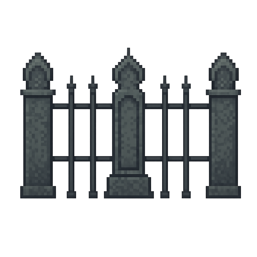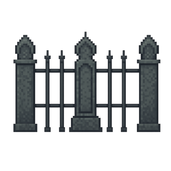 Pixel art of an old cemetery fence without grass and transparent background 1.3 MB